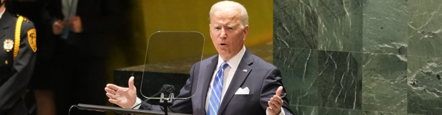 And, actually, Biden’s speech aside, if you’ve long adhered to a strict never-read-pieces-about-UN-speeches-given-by-presidents policy, you probably haven’t missed much; they tend to be about working toward a peaceful, prosperous future for all. Still, you should read a piece about Biden’s speech—the very piece you’re reading, in fact! Biden’s speech was—by my lights, at least—an extremely important document. In particular:
